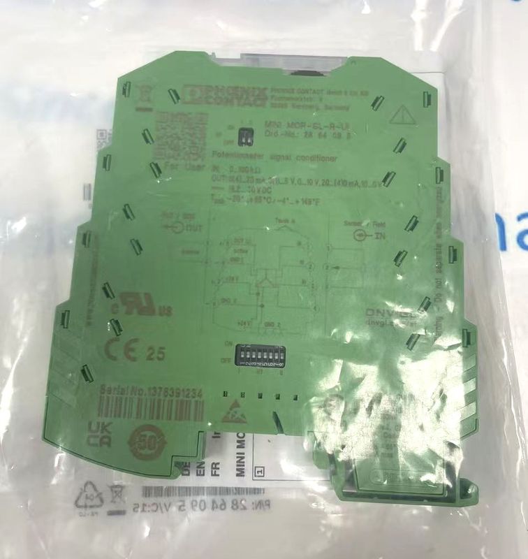 The Phoenix Contact MCR - SL - R - UI is a high - performance potentiometer position transducer belonging to the MINI MCR product series. With an ultra - slim 6.2mm width, it is specialized in converting potentiometer position signals into standardized analog signals. It is applicable to potentiometers with a resistance range of 100Ω - 100kΩ and supports flexible configuration of output signals via DIP switches. Equipped with 3 - way isolation and automatic potentiometer detection functions, this module is widely used in industrial automation, process control, and machinery monitoring systems. It ensures accurate and stable signal transmission while simplifying debugging and installation processes, which is essential for improving the reliability of industrial control systems.